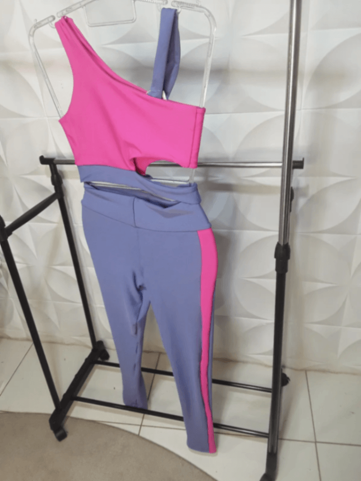 • Blocos de Cor Estratégicos: A combinação de cores vibrantes no top com a neutralidade da legging cria um visual moderno e super valoriza o corpo.
